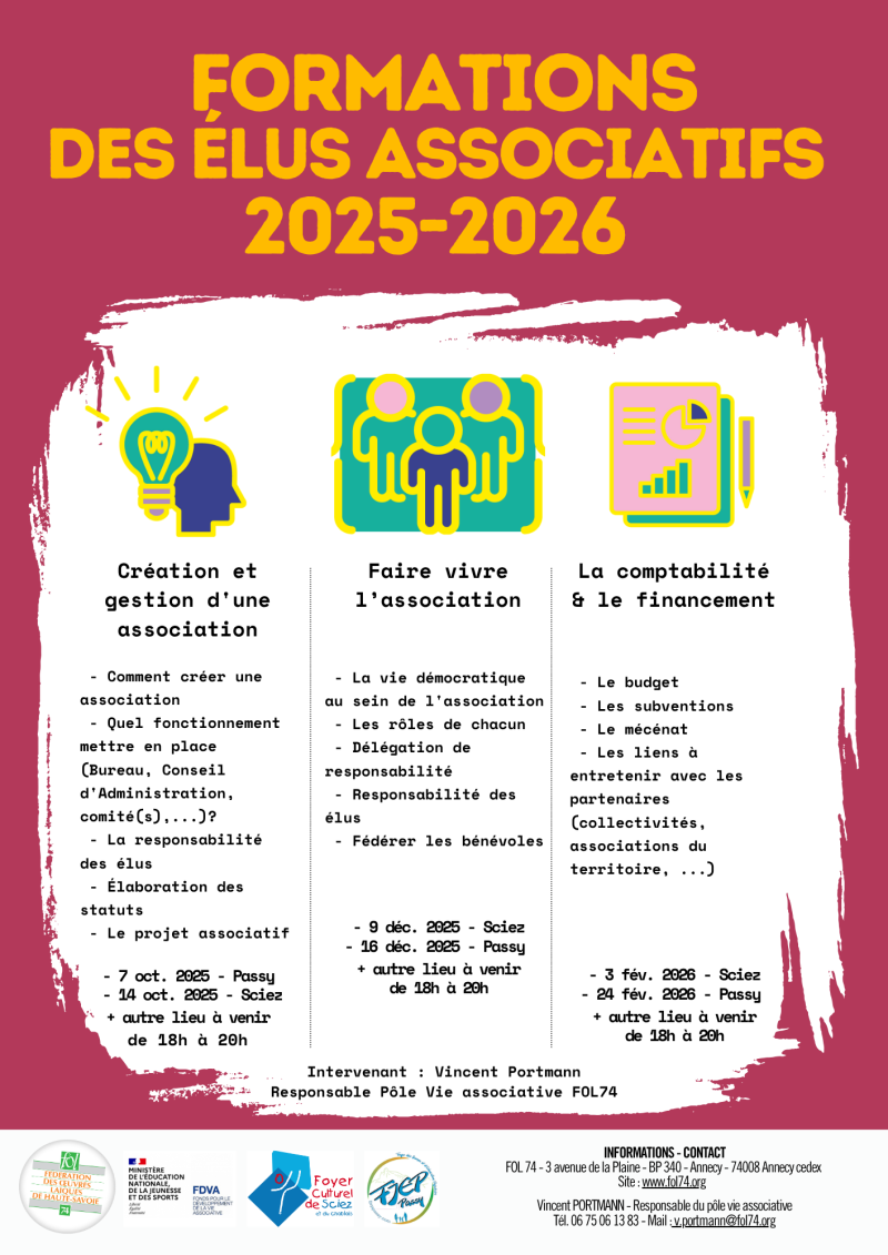 La FOL74 propose, en partenariat avec le FDVA (Fonds de développement de la vie associative) plusieurs formations dédiées aux élu(e)s associatifs.